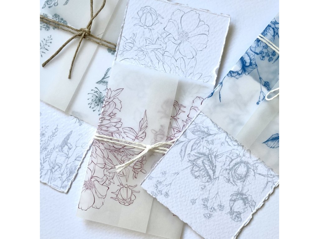 - Černobíle tištěná karta, strukturovaný prémiový papír s trhaným okrajem 320g