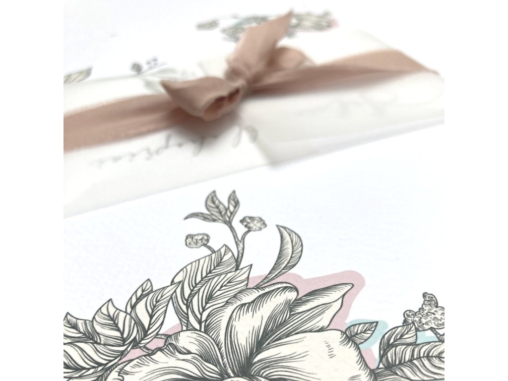 - Barevně tištěná skládaná karta, strukturovaný prémiový papír s trhaným okrajem 260g
