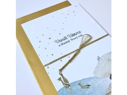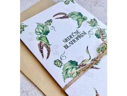 Přání s motivem tulipánů. Dvojitá karta s rovnými okraji bez textu, s ozdobným papírovým proužkem a režným provázkem. Doplněno o žlutou obálku s...