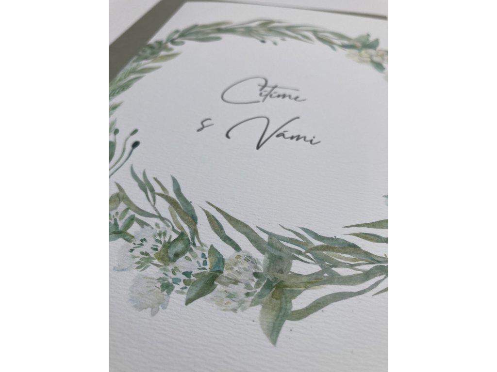 - Barevně tištěná skládaná karta, strukturovaný prémiový papír 260g